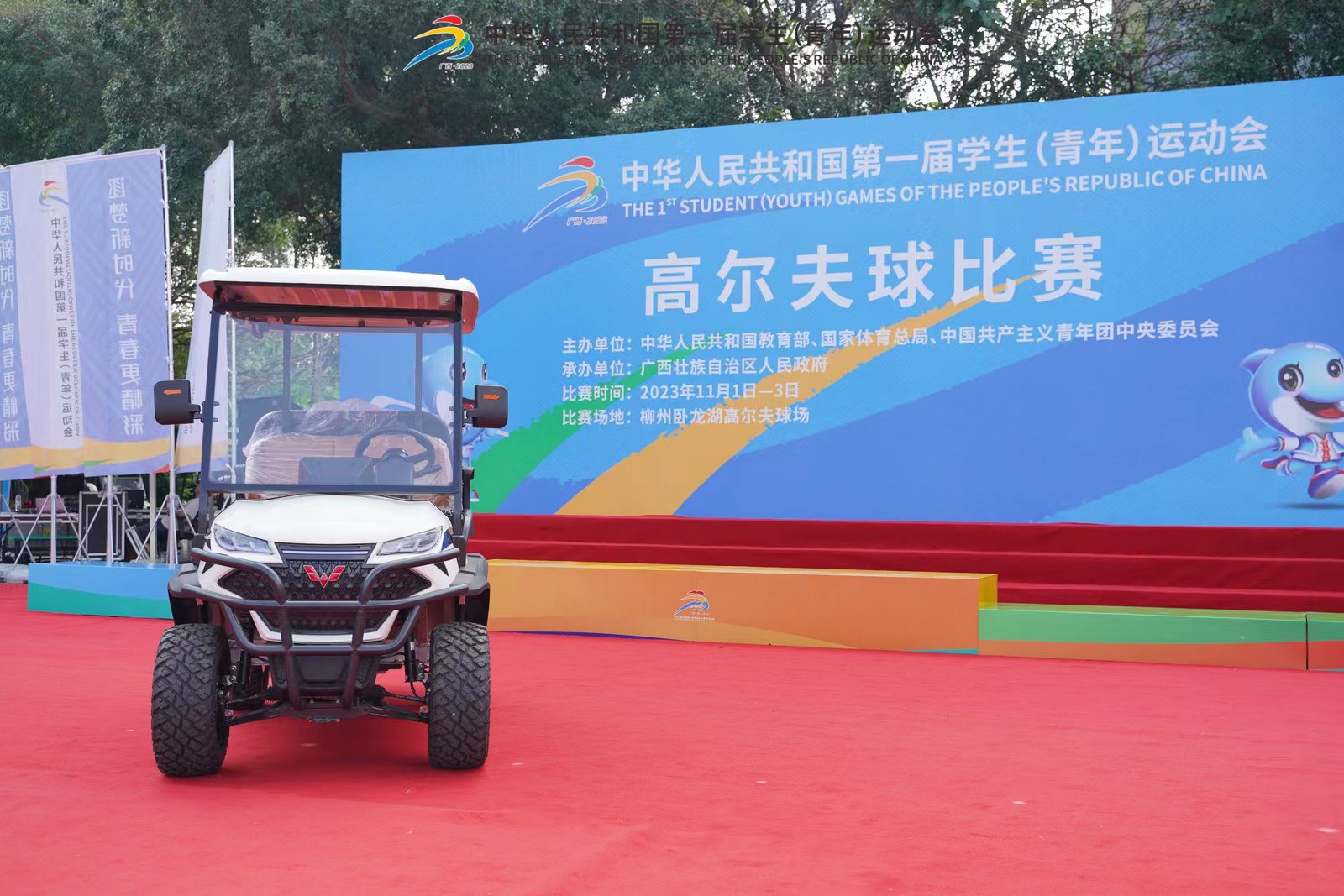 此外,五菱高爾夫球車等也在柳州臥龍湖高爾夫比賽現(xiàn)場,用于接駁使用。其他部分比賽場館也會有集團(tuán)元素。