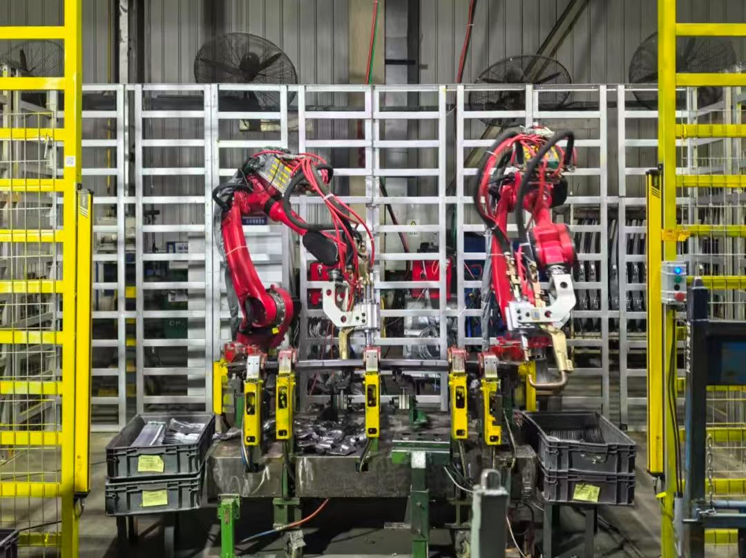 為了快速推進(jìn)項(xiàng)目落地,設(shè)備運(yùn)行團(tuán)隊(duì)聯(lián)動(dòng)沖焊車間開展發(fā)罩內(nèi)板自動(dòng)化產(chǎn)線改造。設(shè)備工程師提前學(xué)習(xí)機(jī)器人應(yīng)用、機(jī)器人與PLC進(jìn)行modBusTCP通訊配置學(xué)習(xí),同時(shí)開展電氣系統(tǒng)規(guī)劃設(shè)計(jì)和物料清單采購(gòu),設(shè)備工裝設(shè)計(jì)師進(jìn)行機(jī)器人底座設(shè)計(jì)自制和焊鉗選型模擬,聯(lián)合維修團(tuán)隊(duì)完成產(chǎn)線布局、電氣控制系統(tǒng)接線、自動(dòng)化集成調(diào)試等系列工作;沖焊車間車間負(fù)責(zé)工藝參數(shù)調(diào)整及產(chǎn)線圍欄安裝。經(jīng)改造,單班減少用工2人,產(chǎn)品質(zhì)量得到進(jìn)一步提升。