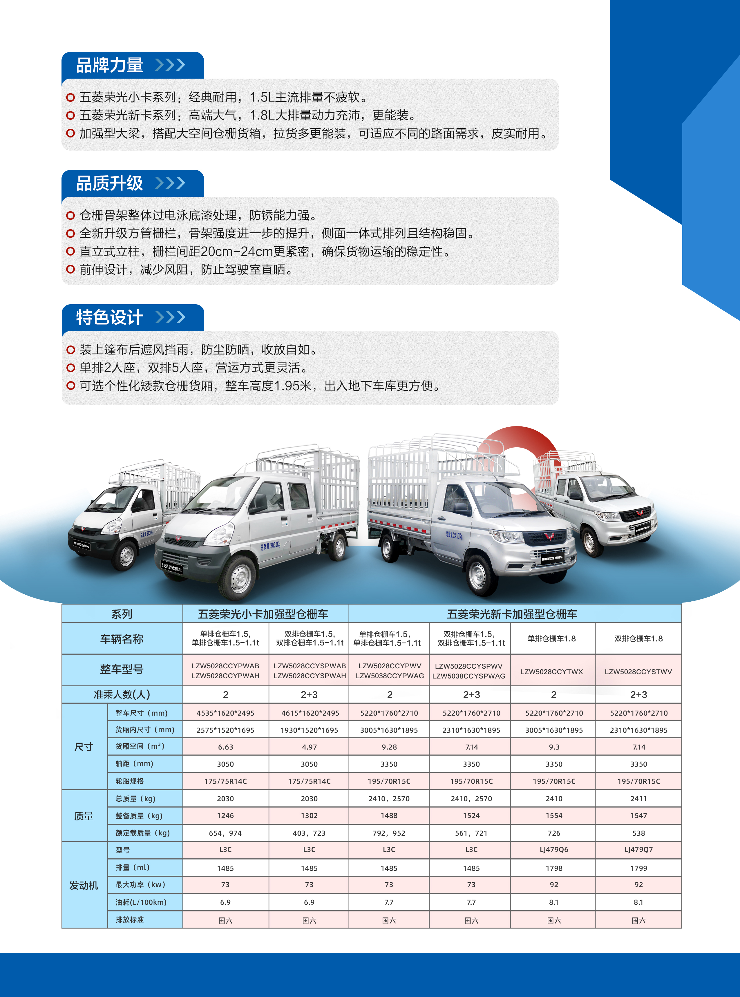 五菱榮光新卡系列:高端大氣,1.8L大排量動(dòng)力充沛,更能裝。