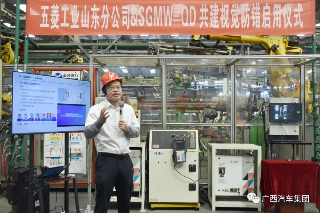 9月14日上午,五菱工業(yè)山東分公司& 上汽通用五菱青島分公司共建車架視覺防錯項目啟用儀式在沖焊車間舉行。上汽通用五菱青島分公司制造質(zhì)量總監(jiān)房桂珍、山東分公司黨委書記、總經(jīng)理梁開榮及其他外部同行共計11家廠商一同見證這場視覺防錯的啟用。